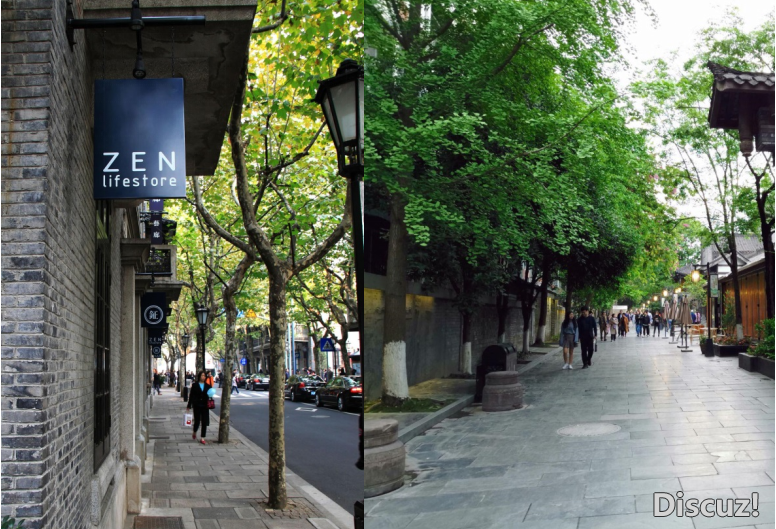植物的形态、色彩、利用方式不同,所营造的空间体验千差万别。与现代商街不同,历史街区的植物造景,应与传统建筑风貌协调统一,借用古典元素,体现历史文化的传承,并用新的造景手法连接古今,体现出丰富的景观效果。