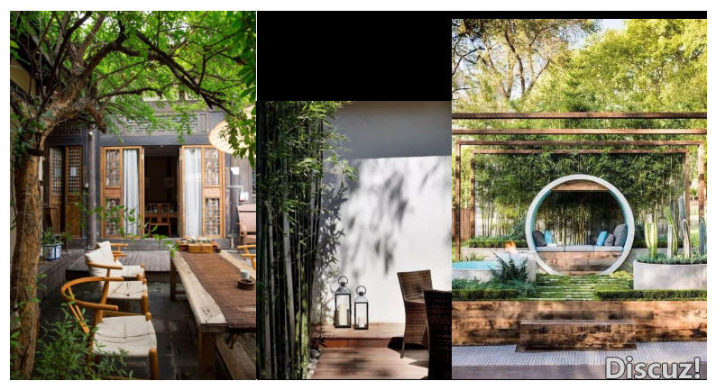 进行小型活动空间的植物景观设计时,应遵循“金角银边、中间留白”的原则,即植物密集以边角为主,能使空间完整,小而不拥挤,小中见大。