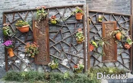 建筑墙体绿化,以营造宜人的街巷景观为目的。按照植物材料沿建筑立面攀附、固定的方式不同,历史街区常用的有攀爬式、悬盆式、布袋式。