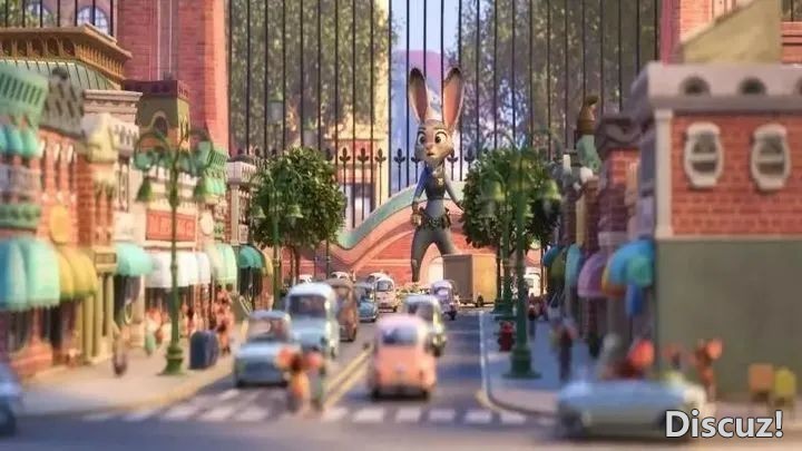 当火车驶入车站,打开的三道不同大小的车门,不仅仅是有趣幽默的画面,动物城除去建筑的设计是根据动物们身高差别而有做调整以外,城中设计了一套适应每种动物体格的公共设施系统。尤其是仓鼠城中的动物小尺度空间设计,使人感到亲切、温暖、充满想象和童话故事感。