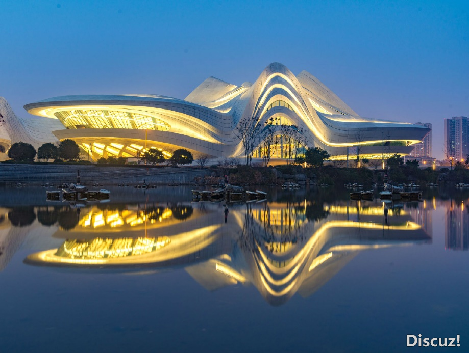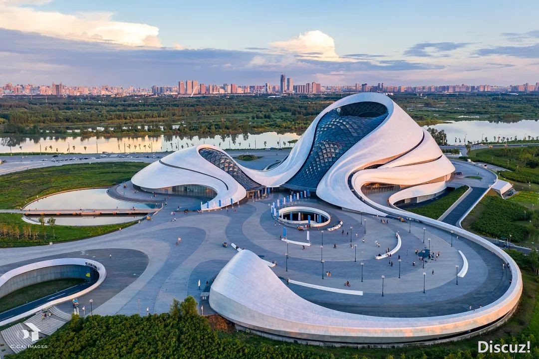 02.网红建筑的分类(1)视觉奇观型第一类胜在形式震撼:通过建筑外观的大胆尝试,形成视觉的冲击、感官的高潮。通过对建筑形式美学概念的更新和底线的挑战,打造视觉奇观型公共建筑,以触发大众对“美”和“丑”的共情能力。a.先锋建筑以扎哈、库哈斯、马岩松等知名建筑师在中国创作的先锋建筑为代表,追求建筑形式通过参数化设计或概念创新造就的震撼感。代表作品包括:长沙梅溪湖国际文化艺术中心、哈尔滨大剧院等。这些建筑的出现足以体现大众对极致的“美”或“新”趋之若鹜。