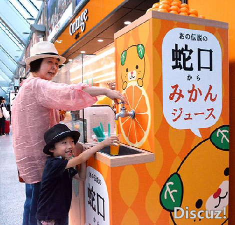 此外,爱媛县域内设置了多个橘子汁水龙头网红打卡点。因为爱媛流行着一个都市传说:在这个甜蜜的地方,连水龙头里流出来的都是香甜的橘子汁!动人的传说+甘甜的橘子,吸引了众多游客纷纷前来打卡。
