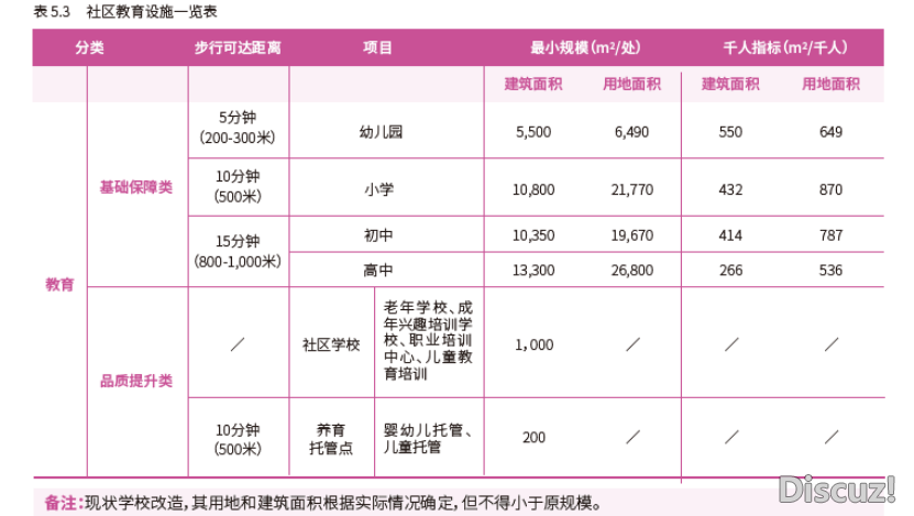 3、教育设施。满足各类人群受教育需求,优先按照标准扩充各类学龄儿童的义务教育设施。基于居民差异化需求,考虑增设各类社区学校:老龄化社区重点提供老年学校;结合成年居民需求提供成年兴趣培训学校;对外来人口较多的社区重点提供职业培训中心;对儿童比例较高的社区提供儿童教育培训,如学龄前儿童托管中心。