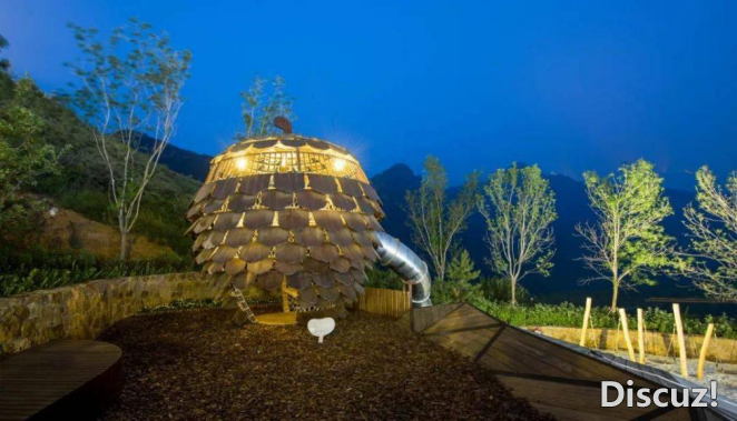 山精灵松塔乐园位于北京古长城金山岭脚下,场地周围群山连绵、松树环绕、村屋遍布。设计师们为了能让孩子在场地中自由地玩耍、激发孩子的天性,充分利用场地中的环境做了一个“有主题+遵地形+有调性”的自然乐园。