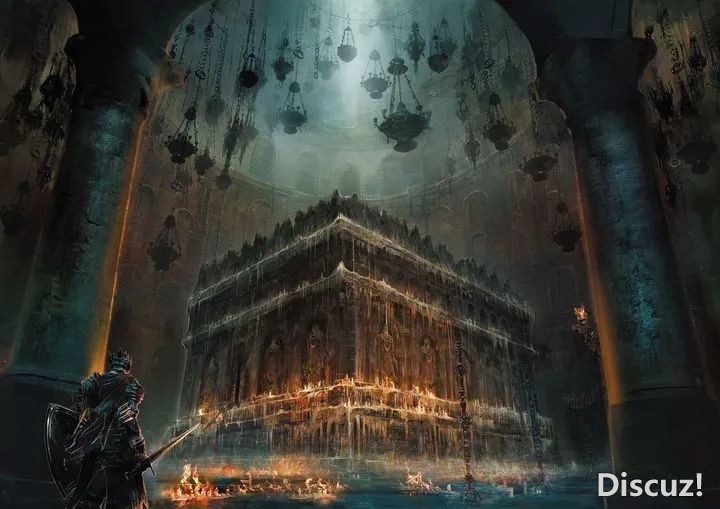 (2)精美的游戏场景营造任何优秀的游戏,美术设计都不会太差。换句话说,正是因为综合素质的优秀,才成就了一款优秀的游戏。制作人宫崎英高成功地营造了一个真实的异世界,这个残酷又美丽的世界观经过三代的发展,已经相当完善,完善的同时还留有一些空间可以发挥。就人物造型和道具设计而言,《黑暗之魂》秉承着深邃、黑暗又很“写实”的美学,与游戏机制一样,美术风格也统一服从于游戏构建的世界观。