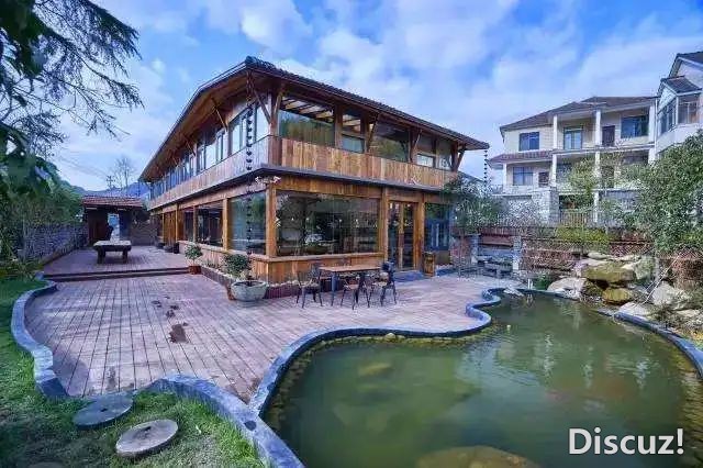 月亮工坊系列民宿,带宽敞庭院,内含泳池,共计有4栋20间房,任何一个角度都是青山蓝天,完美融入天目山自然风景。