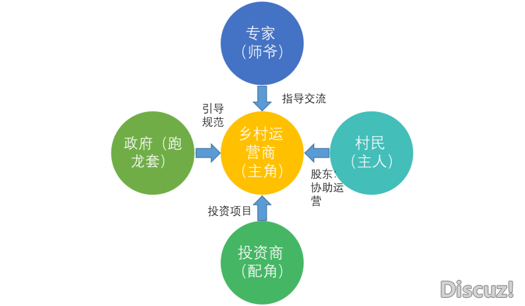 乡村运营商是主角:承担参与村落景区发展规划、项目投资、招商投资、产品开发、旅游营销、日常运营、综合管理等职能,并扮演“第二村委会”角色,参与村庄发展议事会议;