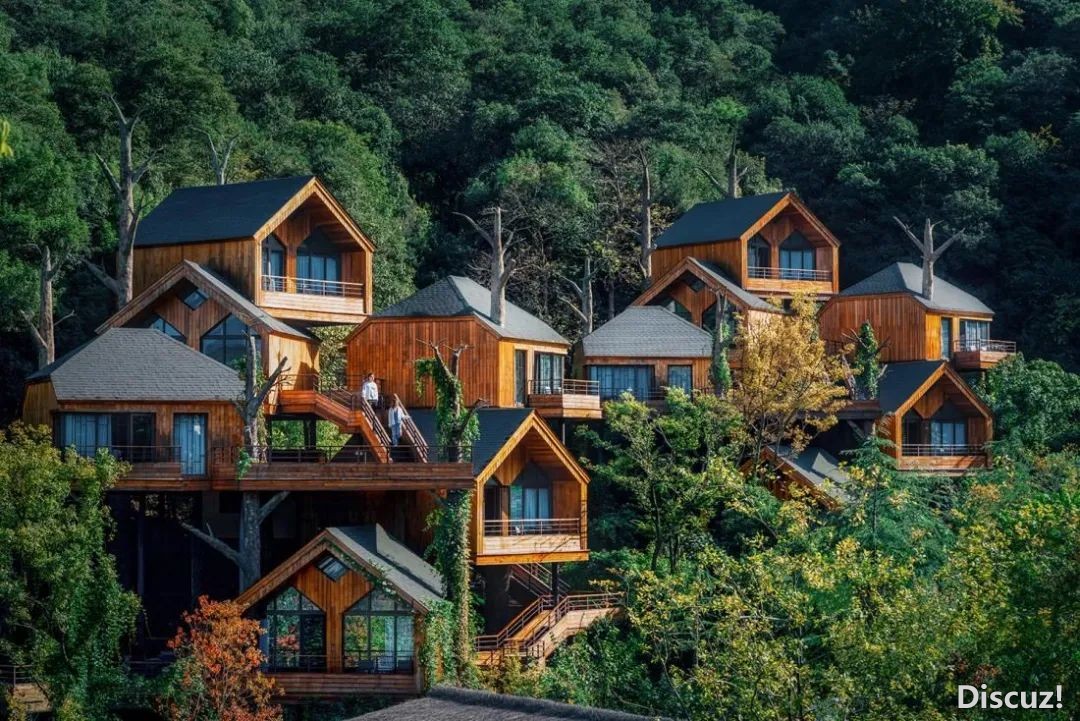 创新住宿:酒店的房型种类丰富多样,据其官网介绍,有湖景房、独栋、套房、还有能满足20人左右团队出游设计的派对屋。此外还特别规划了树屋、星空房、玻璃屋等创意产品,现在这些颜值十足的创意客房已经成为了该项目的地标建筑、网红建筑。