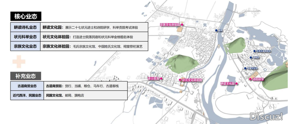 (6)策划秀水封闭景区,打造龙头项目梳理状元文化,打造状元文化体验之旅秀水村承载了状元科举、耕读诗礼、宗族、古道商贸和瑶乡特色五大文化。其中核心是“耕读诗礼传家,考取进士功名,光耀门楣祖宗”。策划打造“特色秀水状元文化之旅”业态。其他古道、西洋民国文化作为辅助补充,打造”3+2“的文化旅游业态格局。