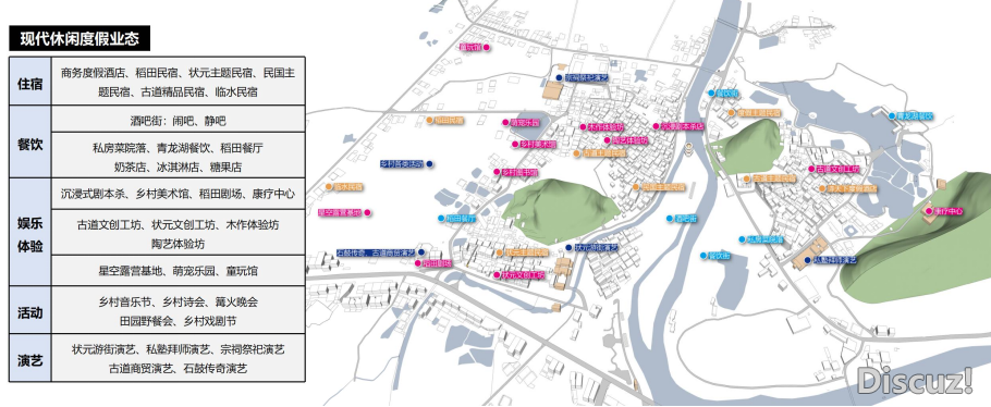 (2)植入休闲度假功能,专业社会资本带动形成龙头效益新增休闲度假业态,建设精品主题酒店、特色民宿、餐饮文化设施等,由广西旅发集团专业旅游投资开发平台进入,形成龙头企业带动效益,整体提升富川旅游产品体系、服务品质和运营示范。