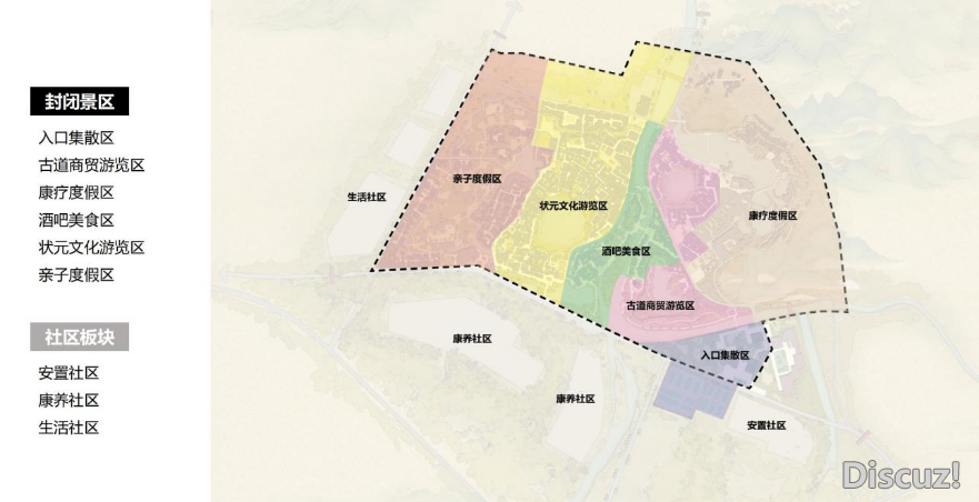通过以上项目策划,秀水封闭景区策划有游客中心、状元渡码头、民国文化馆、石余古道商贸街、青龙山隐温泉度假酒店、酒坊、乡村美术馆、稻田民宿、状元主题民宿、状元文化体验园、酒吧街等81个项目。形成七大功能区:入口集散区、古道商贸游览区、康疗度假区、酒吧美食区、状元文化游览区和亲子度假区。外围设置安置社区、康养社区和生活社区,满足其他需要。合理规划步行、游船、电瓶车游览线路,提供多样化游览方式。