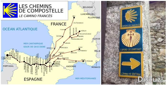 特色: (1)在欧洲历史上具有重要价值——“在圣地亚哥的朝圣路上诞生了欧洲”。(2)自中世纪开始,圣地亚哥就属于天主教三大圣城之一。(3)全球仅有的三处线路型世界遗产之一。(4)全线统一的管理机构联盟:民间组织和官方机构。(5)全线有统一鲜明的符号:贝壳标志及黄色指引箭头。(6)有多个起点,但圣地亚哥是唯一的终点。(7)参与方式:徒步,骑行,骑马的“苦行”路线。(8)独特的朝圣护照和印章。(9)每一处落脚点也都是朝圣主题的目的地。