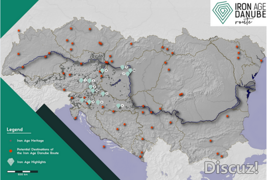 特色:(1)沿线具有多样性的自然景观和人文遗产:多瑙河线路连接了沿河地区铁器时代最重要的古迹,不同的遗迹能够多角度地了解铁器时代人们的生活方式。