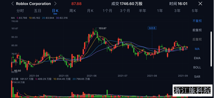 Roblox上市后的股价走势