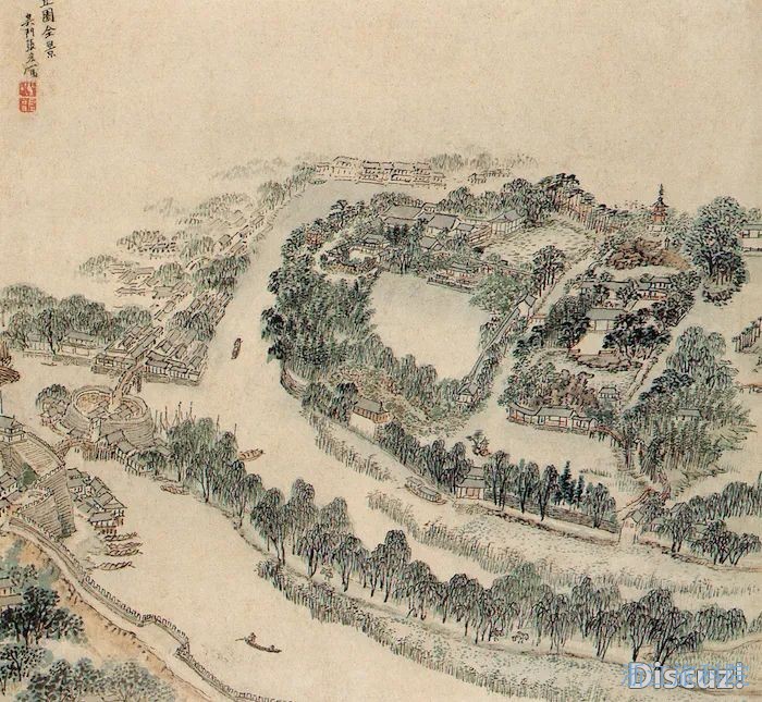 止园占地五十多亩,十分之四为水,十分之三为土石,十分之二为房舍,另外一成则给了竹子和树木,从吴门画派张宏的画笔下,我们能明晰地了解到当时的止园景致:数鸭滩、规池矩池、飞云峰、芙蓉溪等等,揭示了从立意通过“迁想妙得”的园林艺术理法而得到活生生的景象。