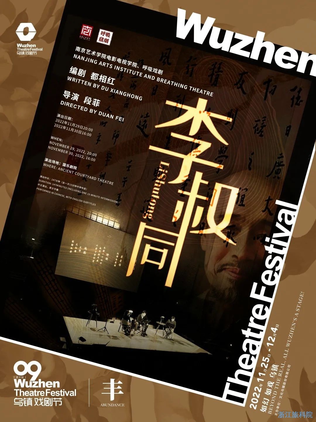 演出单位 南京艺术学院电影电视学院&呼吸戏剧 编剧 都相红 导演 段菲 演出日期2022年11月29日20:002022年11月30日16:00 演出场地 国乐剧院 演出时长 147分钟(含一次中场休息)话剧《李叔同》以极简的舞台和纯粹的表演,来诠释一代音乐、美术、书法大家李叔同的故事。在巨大的时代背景下如何展现“李叔同”的人生历程,是南京艺术学院与呼吸戏剧需要共同探讨的问题。他们认为,世人关于李叔同的印象首先是歌曲《送别》,再是其生平经历。