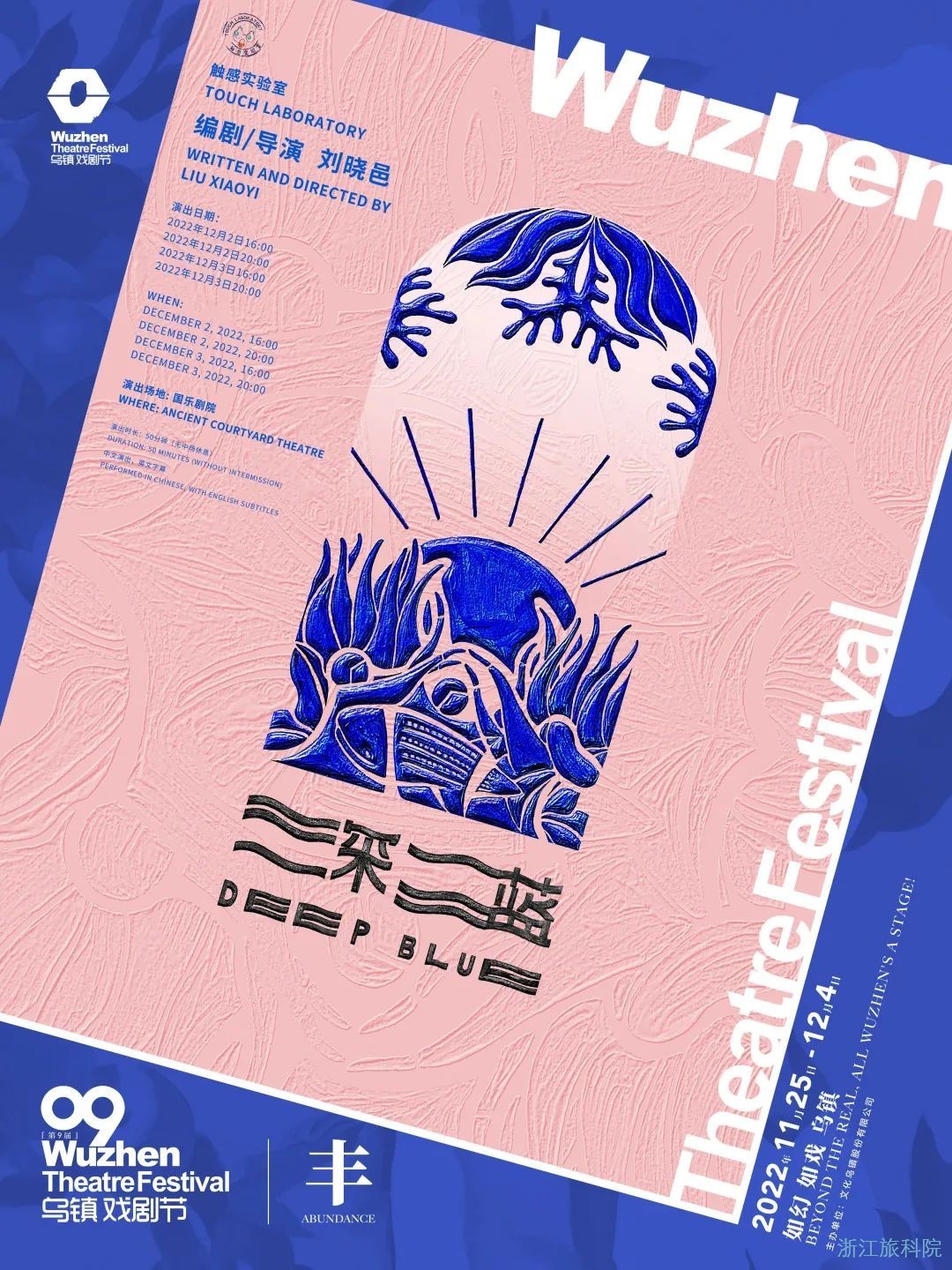 演出场地 国乐剧院 演出时长 50分钟(无中场休息)刘晓邑导演作品《深蓝》,用多种创意元素还原了一个活灵活现的海底世界。原创音乐让深海中沉浸的感觉更加生动。演员们用废弃的生活物件、沙、水、光、音将剧场变成海洋,他们用肢体操控着木偶,也用东方的诗意创造着无限的想象世界。