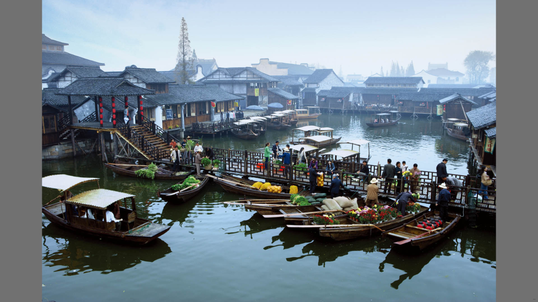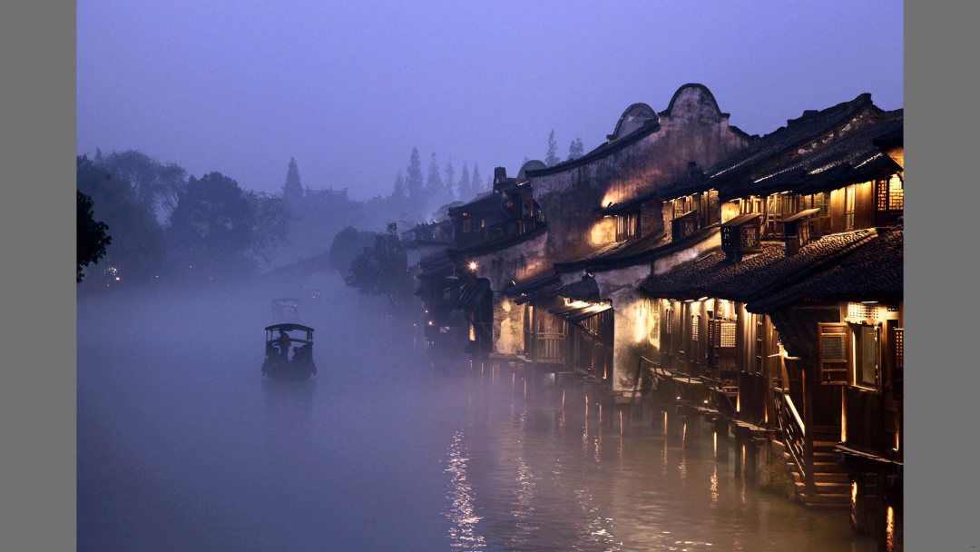 二、水乡风貌恢复中“意境”的营造 江南水乡的美,在于“水”与“乡”的交融共生,这种“天人合一”的意境是乌镇风貌恢复的核心追求。木心在《乌镇》中写道:“水是眼波横,山是眉峰聚,乌镇没有山,水便成了全部的眉眼。”乌镇对水系的梳理与恢复,不仅是水利工程的修复,更是对“以水为魂”的美学重构。河道清淤、驳岸整修、水阁维护,每一步都遵循“水活则镇活”的古训,让流水重新成为串联古镇的血脉。水乡的意境更在于光影与晨昏的变幻。木心曾说:“江南的黄昏是宣纸染了淡墨,一点一点沉下去。”乌镇没有用过度的商业化灯光破坏这份朦胧,而是以马灯、窗烛营造“月上柳梢头”的古典氛围,让暮色中的水影成为流动的“水墨长卷”。清晨的薄雾、午后的橹声、夜晚的渔火,这些元素的保留与再现,让乌镇的风貌超越了地理空间的范畴,成为江南文人心中“小桥流水人家”的意境载体——在这里,“风貌”不再是视觉的堆砌,而是能引发“此中有真意”的审美共鸣。