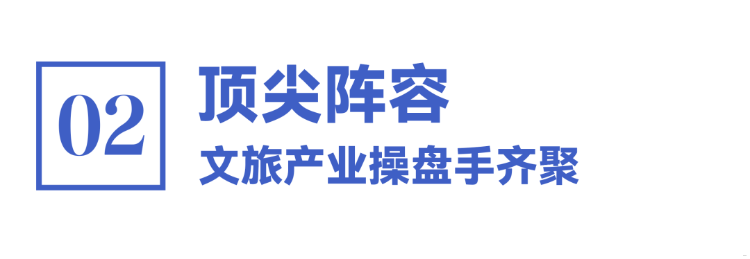 本次创新展汇聚了中国文旅界的顶配阵容,智囊圈、资源圈、合作圈全盘接入,吴国平(拈花湾)、马寅(阿那亚)、刘子力(陶溪川)等文旅标杆项目创始人齐聚;谢萌(正佳广场)、吴向阳(篁岭)、邱凯(唐山宴)、姜君(张家界七十二奇楼)等文旅业创始人和铸造者集体发声,共同探讨未来文旅产业激励人心的破界之道。