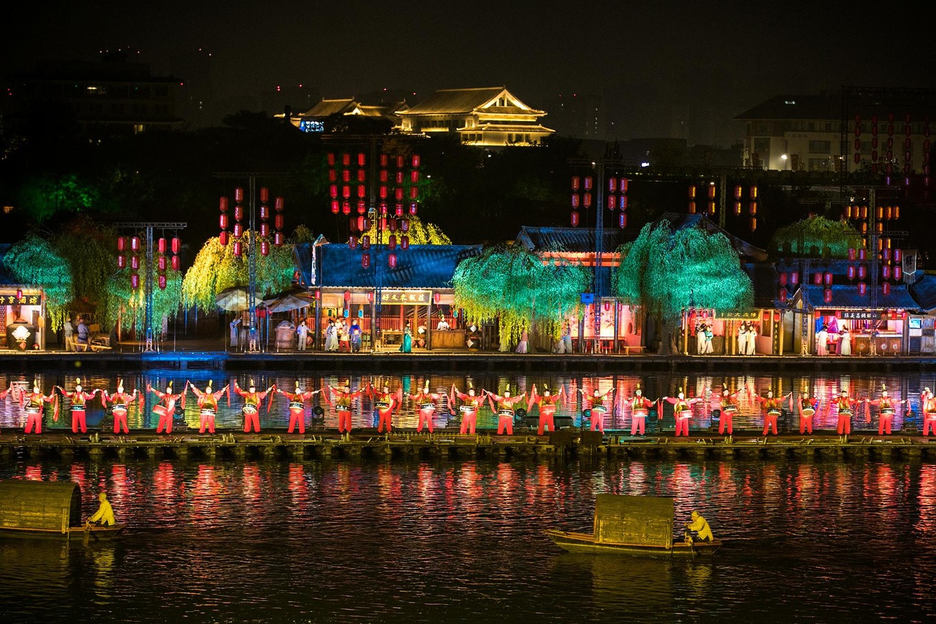 这是另一场备受欢迎的水上实景演出,与《东京梦华》的唯美不同,它以其火爆、激烈的战争场面为主要看点。