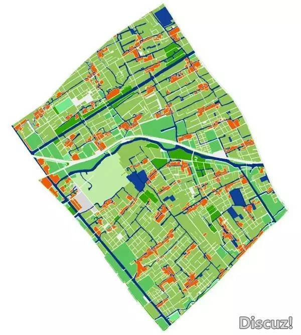 1. 生态提升在维护生态环境、突出乡野特色方面,规划保留了当地农田阡陌、水道蜿蜒的自然景观特征,通过土地整治和环境治理的措施,迁退低效和污染的工业厂区,恢复农田、林地、水系的基础生态功能。