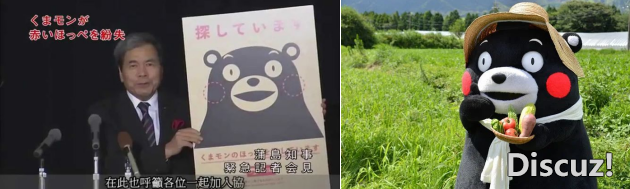 熊本县长召开记者会说明这起Kumamon腮红遗失事件,不仅感谢各界关心,也为引起骚动致歉。县长表示,熊本县在古代被称为「火之国」,不只有许多红色的象征物,也有众多美味的红色食物,好吃到连腮红都会掉下来,所以Kumamon的腮红也就不见了。透过这次前所未有的事件,想让大家了解「红色」对熊本熊和熊本县的重要性。