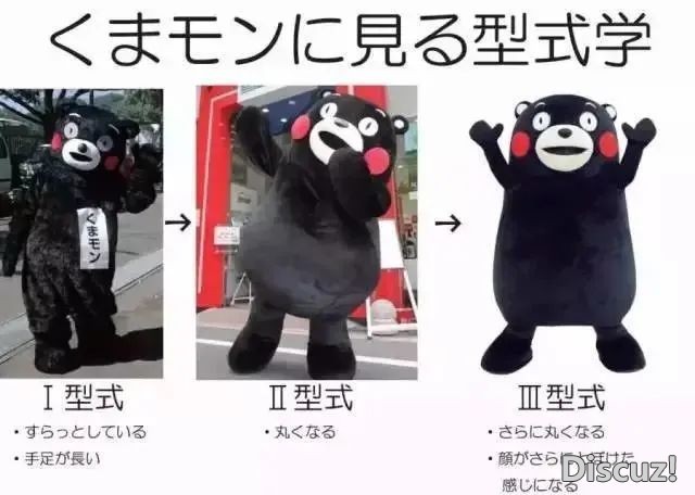 熊本熊的个头和真熊一样大小,使用真人扮演,从做工粗糙看了可能会让人做噩梦的一代熊本熊皮套,到山薰堂请专制吉祥物皮套工厂改进的第二代皮套,到如今我们看到的更加肥大呆萌的第三代皮套。熊本熊的形象也越发符号化和突出萌的形象特质。